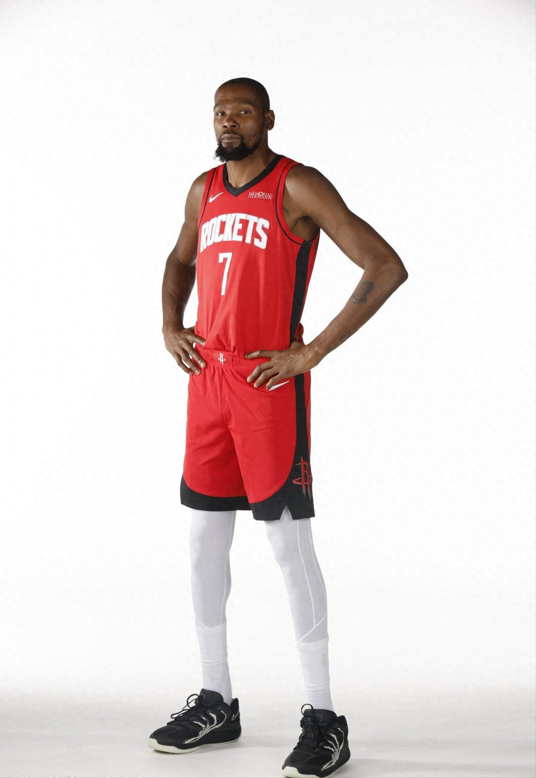 当凯文・杜兰特身着火箭 7 号球衣站在丰田中心的镜头前时,休斯顿的空气里既飘着冠军憧憬,也藏着老将的温情。9 月 30 日的火箭媒体日,这位手握两枚总冠军戒指的巨星没有抢占聚光灯,反而在与阿门・汤普森、申京的合影中主动让出 C 位,一句 "这里能让我安顿下来" 的表态,为他的第五支 NBA 球队之旅写下温暖开篇。