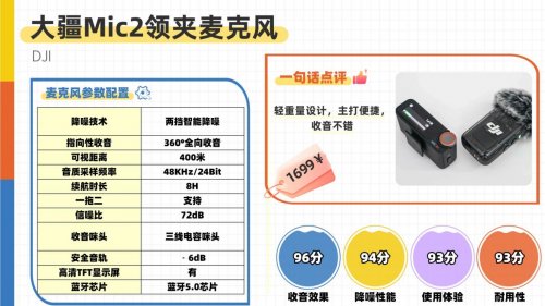 4:大疆DJI Mic Mini——极致轻巧,长续适配