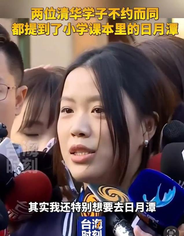 同行的奥运冠军、清华学子杨倩在接受媒体采访时,表达了特别想去日月潭看看。