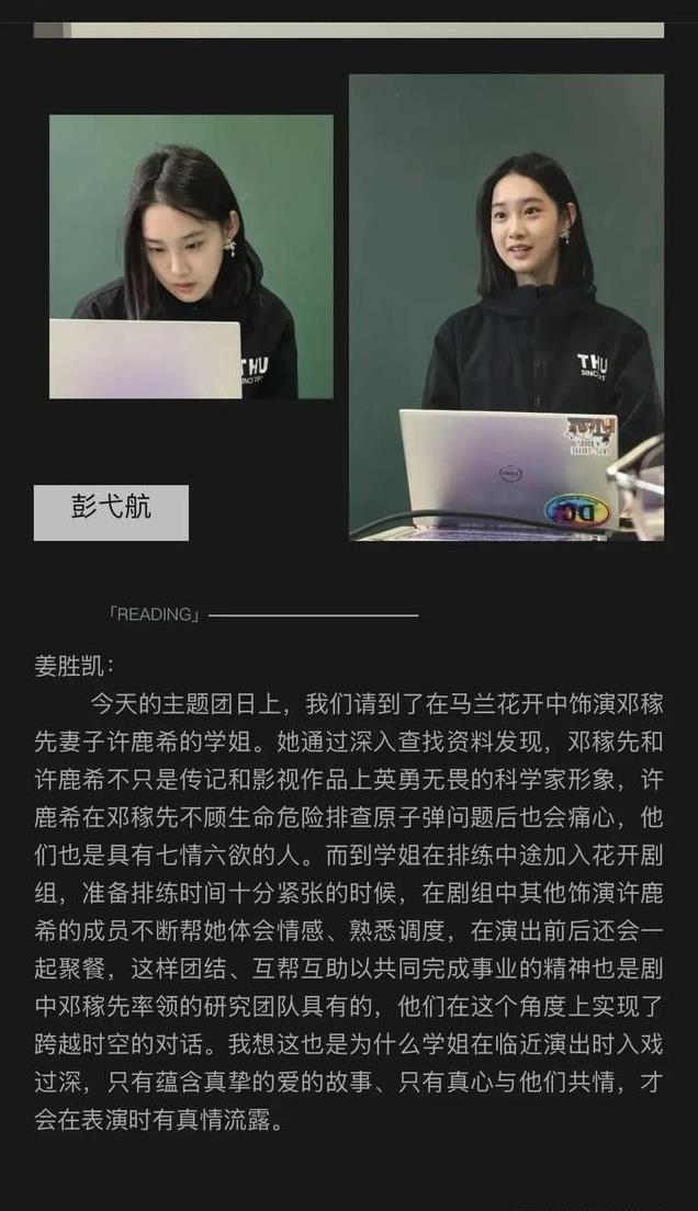 彭弋航参与了清华原创话剧《马兰花开》国家大剧院百场纪念演出,饰演许鹿希。