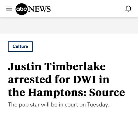 美国广播公司(ABC)报道称,一名执法人员表示,贾斯汀·汀布莱克周一晚(17日)因酒驾被捕,被捕地点在纽约长岛的萨格港。他将在当地时间周二(18日)出庭。