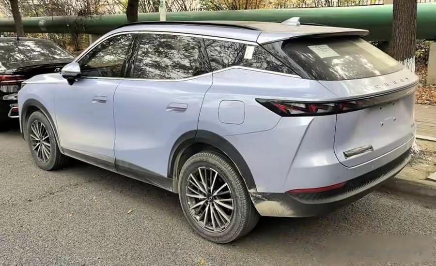 车身侧面有半隐藏式门把手、多辐式轮辋,车顶行李架等多处黑化处理。车尾轮廓有变化,但依然是贯穿式尾灯。