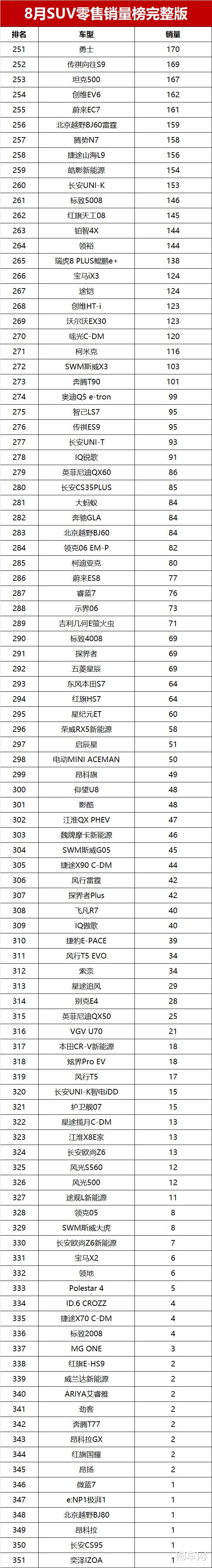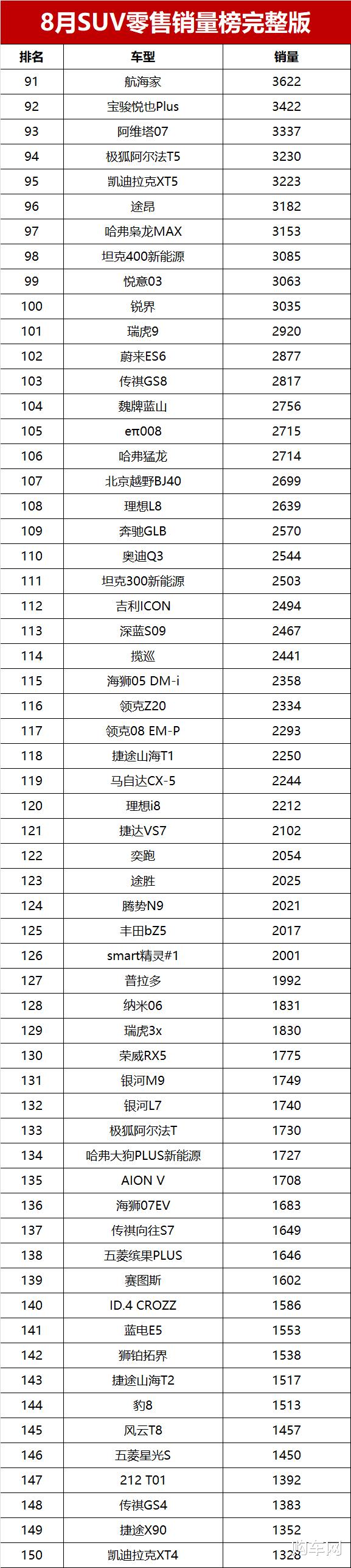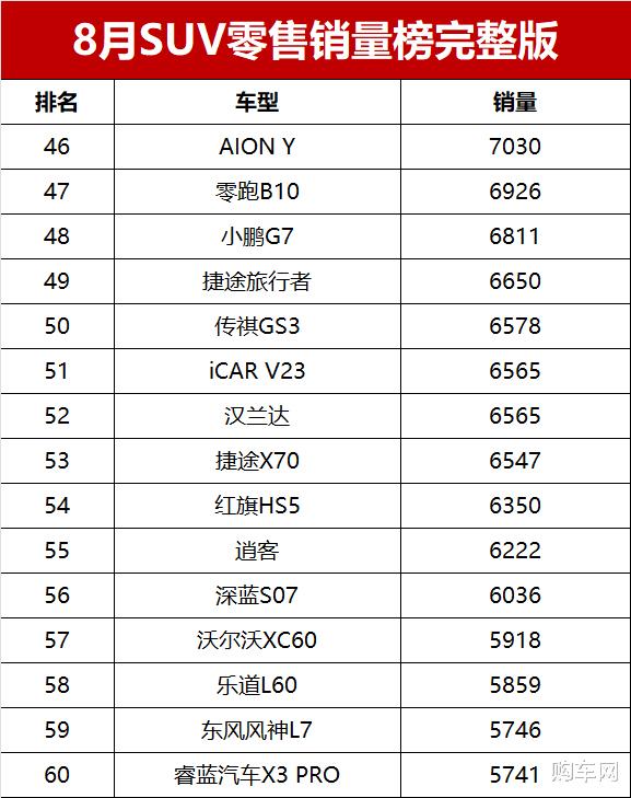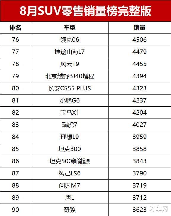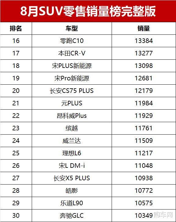 对于2025年8月国内SUV车型零售销量情况,您是怎么看的?欢迎留言谈论。