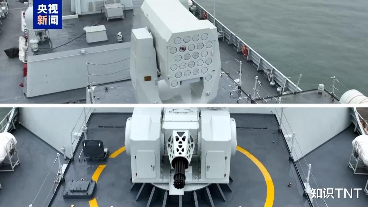 看过了导弹发射系统,再来看它的舰炮系统,一共有多套,位于舰艏的舰炮,口径达到了惊人的130毫米,这是目前我国海军最大的舰载火炮系统。不用多想,它就跟那些传统的火炮一样。火力猛、口径大,既可以对海上的目标进行攻击,也可以对近海海岸的目标进行打击,而且还能对空中目标进行拦截攻击。