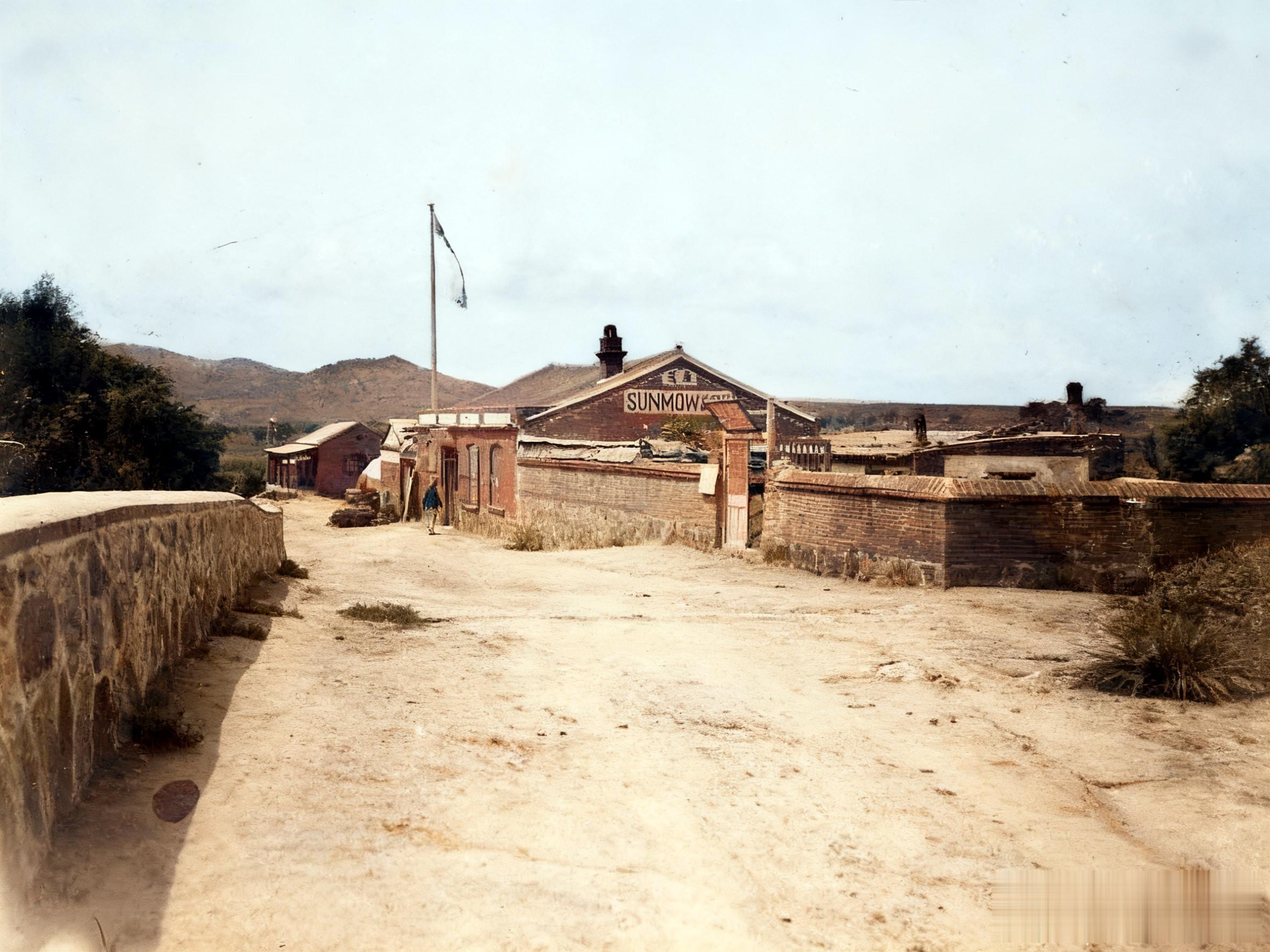 距离小摊贩不远的矮墙尽头是一家综合商店,房屋山墙的位置上写着醒目的“森茂”两个汉字以及英文“Sunmow”。门脸不大,旁边的旗杆上挂着一条长长的旗子。
