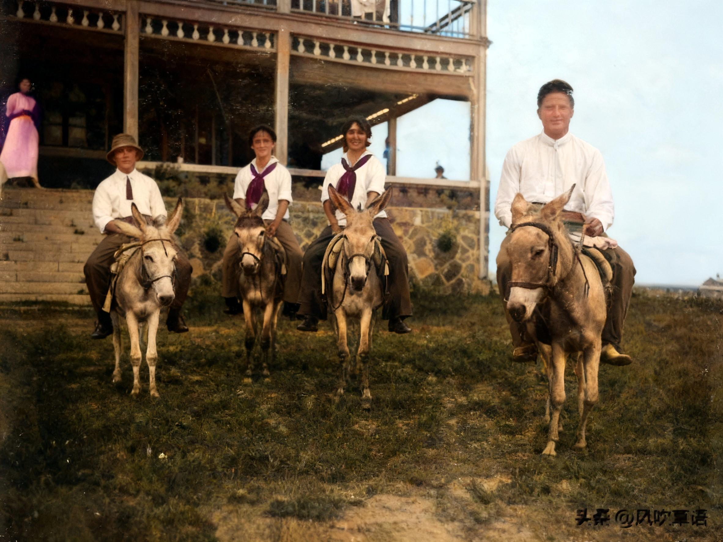 骑上毛驴的洋人在旅店前专门留了一张合影。对于他们来说,骑着毛驴出游是一种独特的体验,不但可以感受到乡村野夫骑牲口的快乐,还因为行动较慢,可以更充分地欣赏沿途的风景。