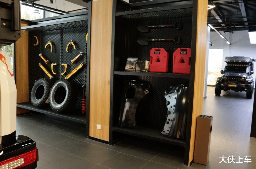 正对入口的中央区域主要用于展示辅恒汽车每一阶段的主流核心产品。中右侧的改装区域更具看点,专业的越野轮胎、各式各样的轮毂,以及颜值出众的脱困板等组成的装备墙,都散发着越野的热血与激情。