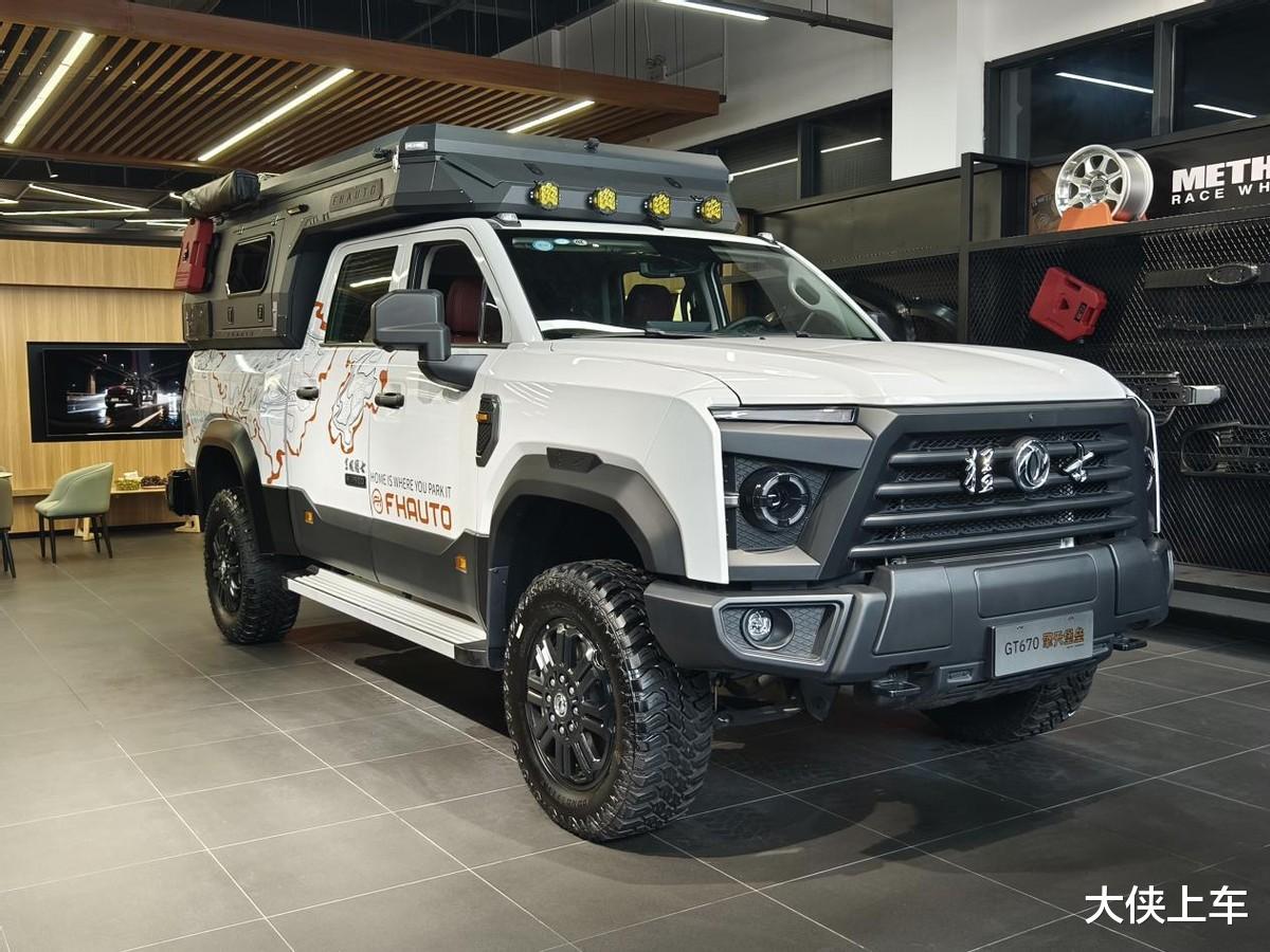 作为东风猛士的直营店,辅恒汽车展出的东风猛士多款经典车型叹为观止。威严厚重的车身设计和硬朗的车身线条牢牢吸引人们的目光。如这款GT670擎天堡垒,整车基于东风猛士MS600底盘打造,搭载康明斯6.7T大排量涡轮增压柴油发动机,匹配6AT自动变速箱,满载最小离地间隙340mm,涉水能力达到850mm。在恶劣天气及复杂路况下都有出色的脱困能力。顶部的厢体部分采用了全铝框架,在保证强度的同时还降低了自重,内部还用上了保温层,并采用电动升顶结构。内部围绕过道这一中轴线在左右分别布局了会客厅和厨房等功能区,越野性能难逢敌手。
