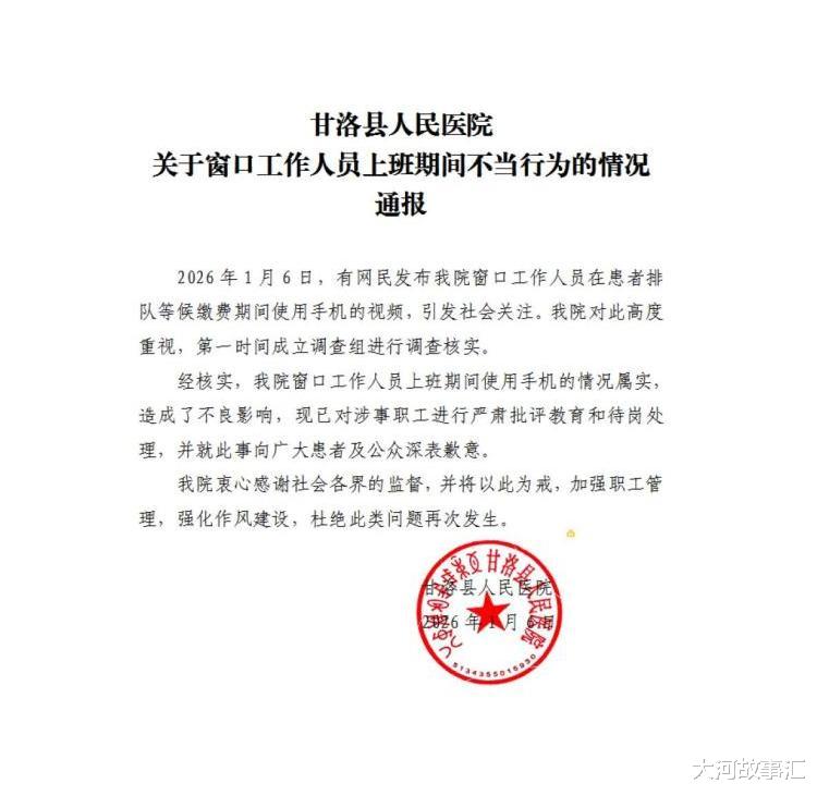 “生病本就遭罪,排队缴费还要看收费员低头玩手机”,1月5日,四川甘洛县人民医院收费窗口的一段短视频,精准戳中了公众对医疗服务的焦虑痛点。相较于收费员上班玩手机的失范行为,医院从“网络故障,手机传数据”的牵强辩解,到卫健委介入后才承认事实、作出待岗处理的态度反转,更让这场风波蒙上了信任危机的阴影。医疗窗口的服务温度,从来都藏在细节里,而这样的“先掩饰后认错”,无疑在医患之间划下了一道本可避免的裂痕。