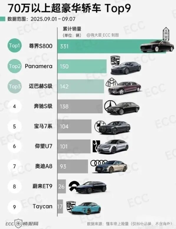 就在刚刚,一份9月第一周(9月1日至7日)70万元以上超豪华轿车的销量榜单,直接在汽车圈引爆了一颗“深水炸弹”。