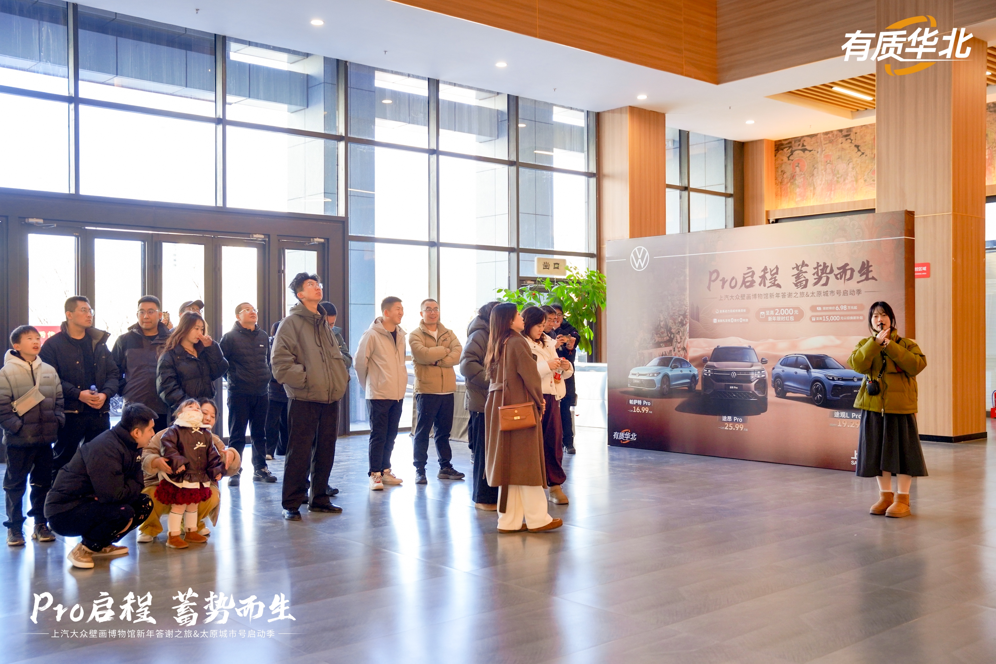 活动正式开始前由博物馆讲师带我们走进活动主题。山西晋之源壁画艺术博物馆。作为中国唯一的壁画主题博物馆,它像一部立体的史书,将散落在三晋大地墙壁上的丹青瑰宝,系统地汇聚于此。从粗犷的远古岩画到煌煌盛唐气象,再到集大成的永乐宫《朝元图》复原场景,一部中国壁画史在眼前徐徐展开。山西壁画能流传千年,靠的是对工艺的极致追求;而上汽大众能深耕市场多年,凭的正是这份对品质的执着。“匠心” 从来不是空洞的词汇,而是跨越时空的共鸣。