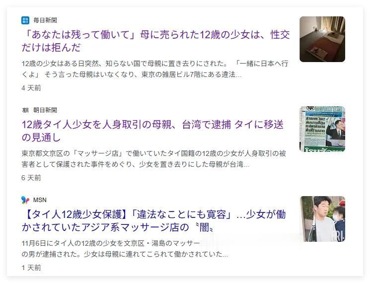 可是,更让你意外的,是东京警方逮捕强迫12岁女童卖淫的“按摩店”、“风俗店”经营人员的涉嫌罪名,居然是所谓的“违反劳动法雇佣未成年人”,并不涉嫌贩卖人口,更不涉嫌强奸。