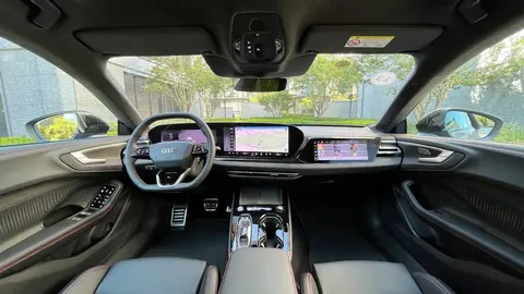 标志性的无框车门是其轿跑身份的核心标识,开门时玻璃自动下降1厘米的仪式感,配合三层密封胶条与加厚玻璃的隔音设计,实现"颜值与静谧性兼得"——120km/h巡航时车内噪音控制在62分贝,达到图书馆环境音水平 。中控区域给一些常用功能留出了一些按键倒还行,但空调操作都是在屏幕内。车机系统没登录账号,因此简单试了下响应速度中规中矩,菜单逻辑还是不够直观,UI也谈不上多高级,需要适应。副驾驶屏幕带防窥还是比较好的。储物空间不算多,但起码是终于有放手机的地方了。