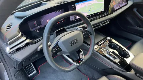 内饰方面:上汽奥迪A5L内饰采用了水平延伸+垂直分层的设计理念,作为运动车型其中控台向驾驶员侧倾斜,形成专属操控视角。中控台上布置了14.5英寸中控屏、11.9英寸仪表屏、10.9英寸副驾屏为全系标配。此外,中控屏采用2.5D曲面玻璃覆盖,分辨率达2.5K配合高通骁龙8295芯片与千兆以太网传输架构,触控操作流畅度与智能手机相近。提供琥珀红、月光银、珠母米和玄夜黑共4种内饰配色。其AR-HUD采用13.1英寸浮影W-HUD方案,基于行LCoS(硅基液晶)显示技术打造,物理显示尺寸13.1英寸,投射至风挡后形成等效70英寸虚拟画面,成像距离等效于前方10米,符合人眼自然视觉焦点。其显示信息丰富,可将导航路线及箭头指引、车道偏离预警等信息投射于风挡,复杂路口还可自动放大显示区域,降低导航误判风险。上汽奥迪A5L搭载基于华为乾崑技术的智能车机系统,支持全场景语音交互,该车语音指令可实现四分区唤醒。体验下来,其语音指令识别准确率很高,可以支持连续语音指令,以及场景化模糊指令的实现。此外,网联化方面,该车支持华为HiCar与苹果CarPlay双协议,可实现手机应用无缝流转。