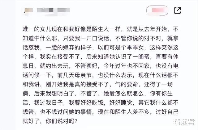 有人觉得是父母长期的教育方式或相处模式存在问题,才导致女儿与他们情感疏离;
