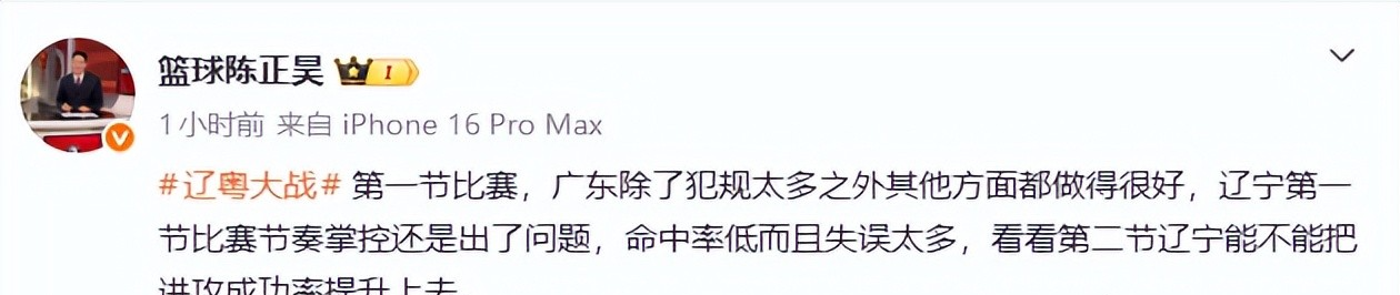 赛后篮球界专家陈正昊老师中肯的评价了比赛,辽篮首节比赛进攻端命中率太低,失误很多,攻守两端完全匹配不上广东男篮的强度。