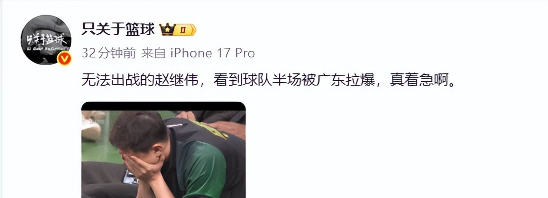 只关于篮球第一时间捕捉到替补席上的赵继伟的状态,赵继伟看到球队打的如此被动很伤心,但是以今天的状态,我觉得继伟上也改变不了比赛的走势。