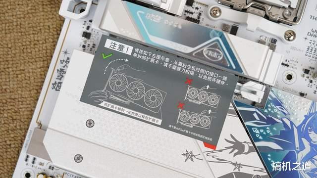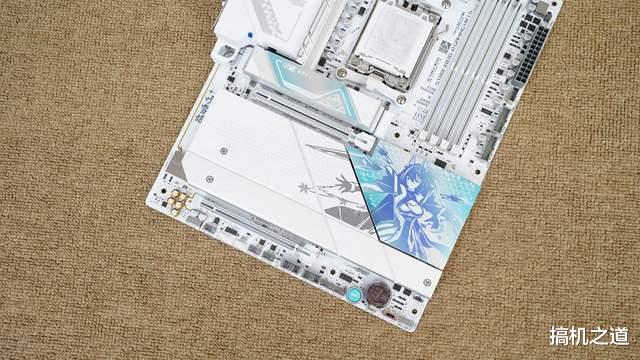 X870吹雪S采用了全白色PCB设计,甚至连内存插槽都涂成了白色,散热马甲上采用了立绘图案,看起来也更加醒目,颜值和辨识度更高。