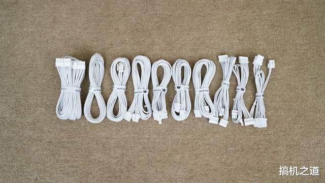 电源标配了10组高品质白色压纹线材,线材的做工非常扎实,线径也比一般电源的线材粗了不少,看得出来,厂家还是非常舍得用料的。