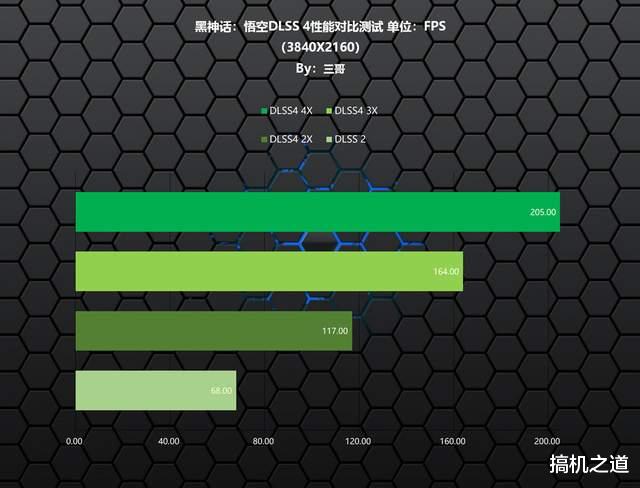 在《黑神话:悟空》测试中,开启DLSS 4后帧率提升的幅度也非常明显。