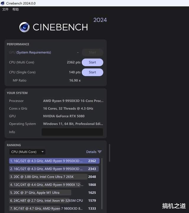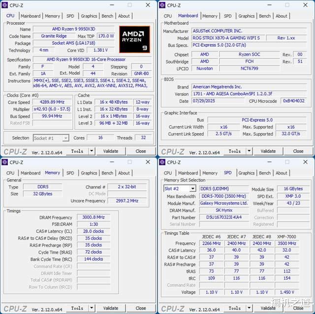 CPU方面,锐龙9 9950X3D不仅游戏性能非常出色,生产力性能同样非常不俗,属于目前桌面级几乎没有短板的存在。