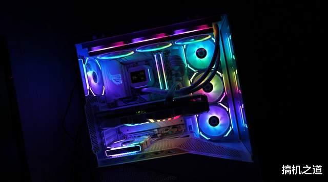 散热器选择了九州风神 冰域360一体式水冷,该散热器采用2.4英寸液晶屏,不仅能够实时显示CPU和GPU的温度、功耗等参数,还支持图片、动图、视频等多媒体播放显示,可玩性拉满;水冷采用自研第6代PWM水泵,解热功耗更高,性能更强悍、使用寿命更长;同时水冷标配3把FL12幻彩星环风扇,不仅高效静音,同时渐变环绕式光效能够让玩家的海景房主机更加酷炫。