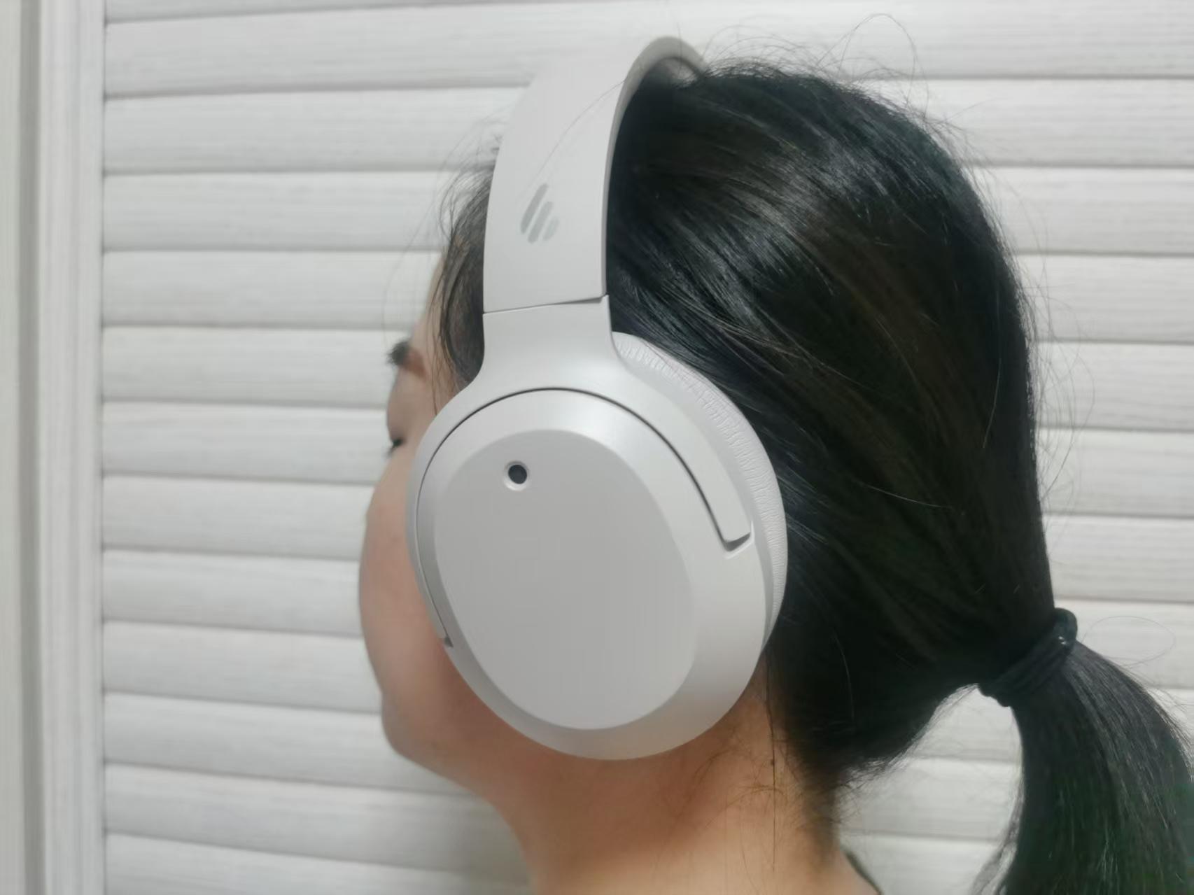 众所周知,耳罩部分是佩戴舒适度的关键所在。漫步者这款耳机采用大尺寸椭圆形耳罩,内部填充慢回弹海绵,外层包裹亲肤蛋白皮,能够紧密贴合耳部轮廓,形成良好的物理隔音效果。此外,专利耳罩还能兼容眼镜,眼镜党也不会出现眼镜腿硌耳朵的烦恼。