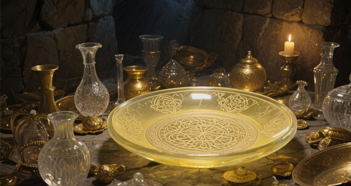 1987年法门寺地宫开启时,考古人员在一堆金银器中发现了20多件晶莹剔透的玻璃器——其中一件淡黄色刻花盘,器型和纹饰跟波