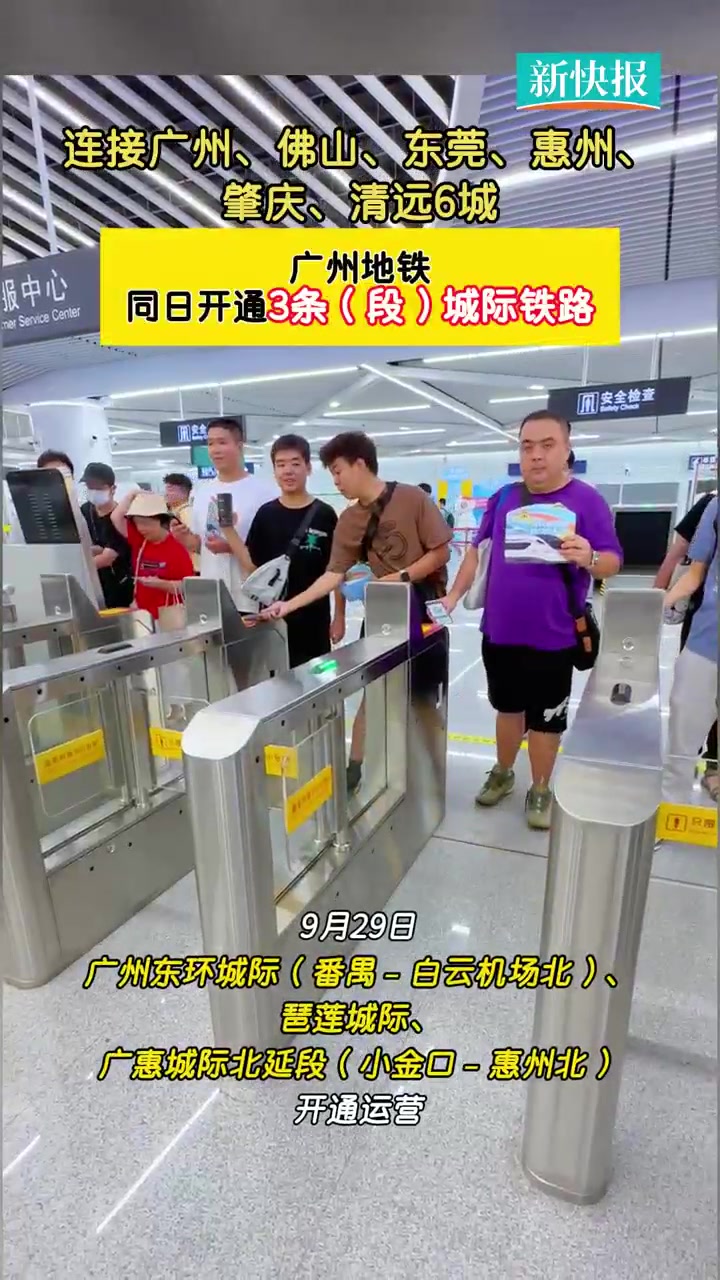 新快报讯 9月29日,广州东环城际(番禺﹣白云机场北)、琶莲城际和广惠城际北延段(小金口﹣惠州北)开通运营。至此,广州地铁集团运营的城际铁路达到420公里,连接广州、佛山、东莞、惠州、肇庆、清远6城,串联10个枢纽,与14条地铁线共17座地铁站便捷换乘,构建起“轨道上的大湾区”核心骨架。当天,广州地铁十三号线二期(天河公园﹣鱼珠)、十四号线二期(嘉禾望岗﹣乐嘉路)、十一号线广州东站也同步开通,广州地铁线网运营里程达到768.4公里。