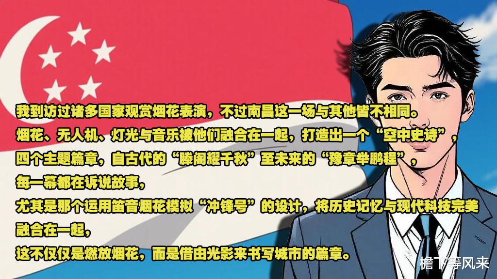 新加坡旅游博主观察的颇为细致,他称:我到访过诸多国家观赏烟花表演,不过南昌这一场与其他皆不相同。