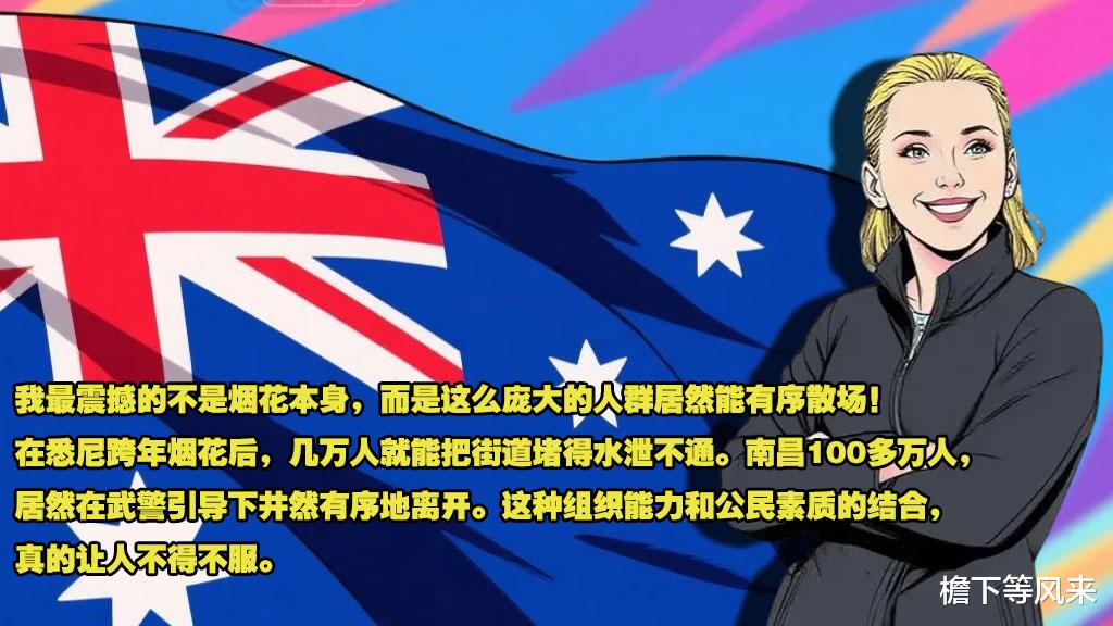 澳大利亚网友的评论很有代表性:我最震撼的不是烟花本身,而是这么庞大的人群居然能有序散场!在悉尼跨年烟花后,几万人就能把街道堵得水泄不通。南昌100多万人,居然在武警引导下井然有序地离开。这种组织能力和公民素质的结合,真的让人不得不服。