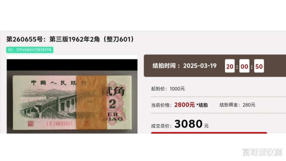 在2025年3月19日的“春秋大拍”中,就有(整刀)的“大桥两角”,最后拍出了3080元!