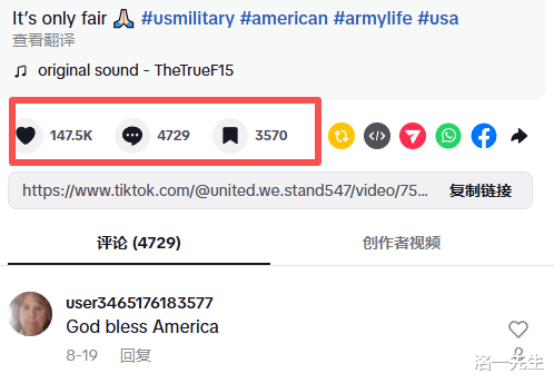 目前这个美国大兵的账号粉丝量已经超过36000人,