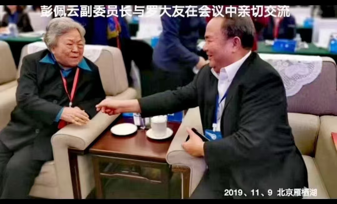 国家级中国茶文化首席非遗传承人 · 中国茶文化研究院院长罗大友(右)与荣获“人民艺术家”国家荣誉称号著名表演艺术家田华在会议中亲切交流
