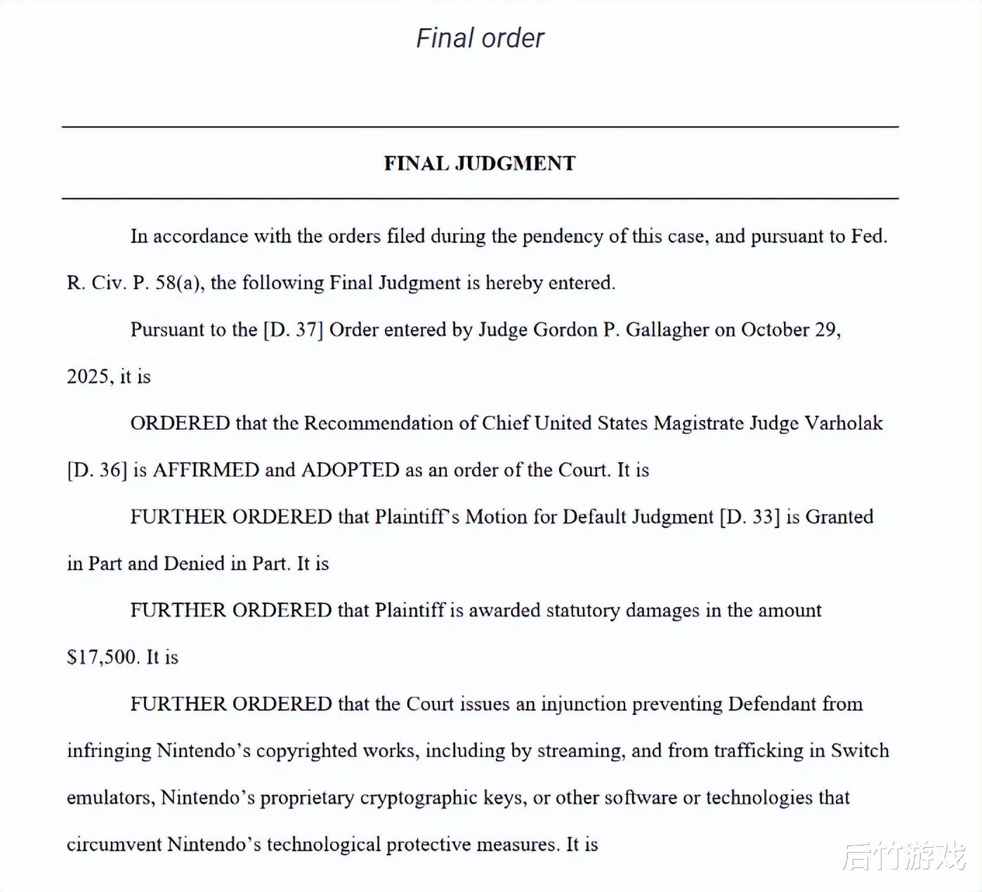 法官认为凯金使用的是在线模拟服务,销毁这些规避设备并不合理。至于第三方,任天堂也未能说明具体是谁。