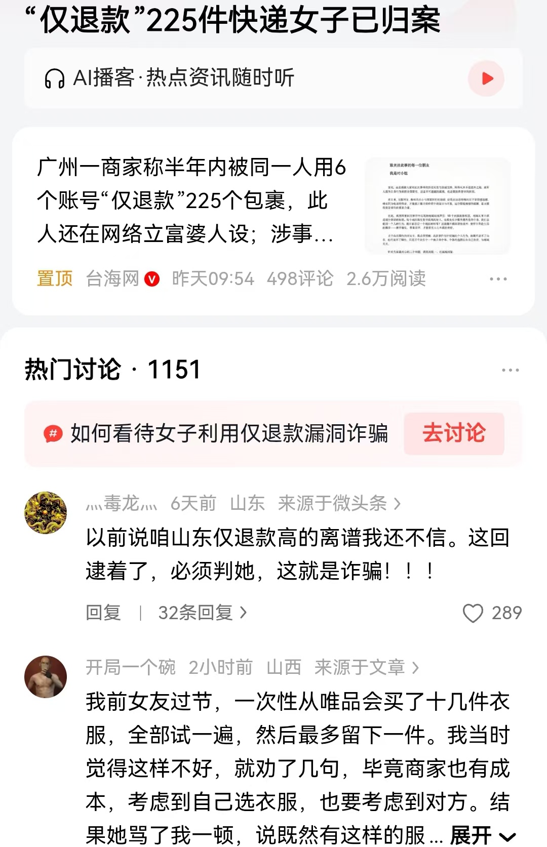 这可能是全网不多的警方出手,维护商家的权益,针对买家的严厉处罚。过去一般都是商家去报案,公安部门帮助协调退款或者拿回退货,如果商家觉得经济利益受损,警方也是建议商家去起诉消费者,由法院进行判定。现在这单的处罚就是直接出手了,使用AI技术制作假图片和假视频,欺骗商家,已达到不退货只退款的目的,但是谁知道警方处罚是如此严重。