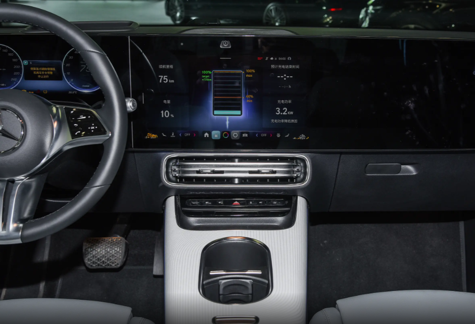 内饰部分同样采用全新设计语言,搭载全新MBUX超级屏,该屏幕由10.25英寸全液晶仪表、14英寸中控屏以及14英寸副驾娱乐屏(高配车型配备)组成连体屏,直接占据了整个中控台,整块屏幕呈悬浮式布局,彰显出极强视觉冲击力,如果是低配版本将没有娱乐屏,不过个人觉得有没有也没什么关系,毕竟科技感已经很强了。