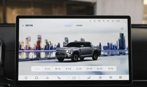 再走进车内看看内饰。双独立大屏样式,悬浮式中控屏那是标配。这种设计既赶时髦又方便操作。它基于全新EEA3.0域控集成式电子电气架构,达到了L2 +级智驾水平。这里面可有28项智驾功能呢,像车道偏离预警,车子要是跑偏了,系统马上提醒你,就像有个小管家在旁边盯着你开车。自适应巡航也很实用,能根据前车速度自动调整车速,跑长途的时候可轻松了。360度全景影像加上透明底盘功能,在停车或者过复杂路况的时候,车子周围和底盘下面看得清清楚楚,再也不用担心刮蹭了。这些功能让皮卡不再只是个拉货的,也能成为舒适出行的好伙伴。