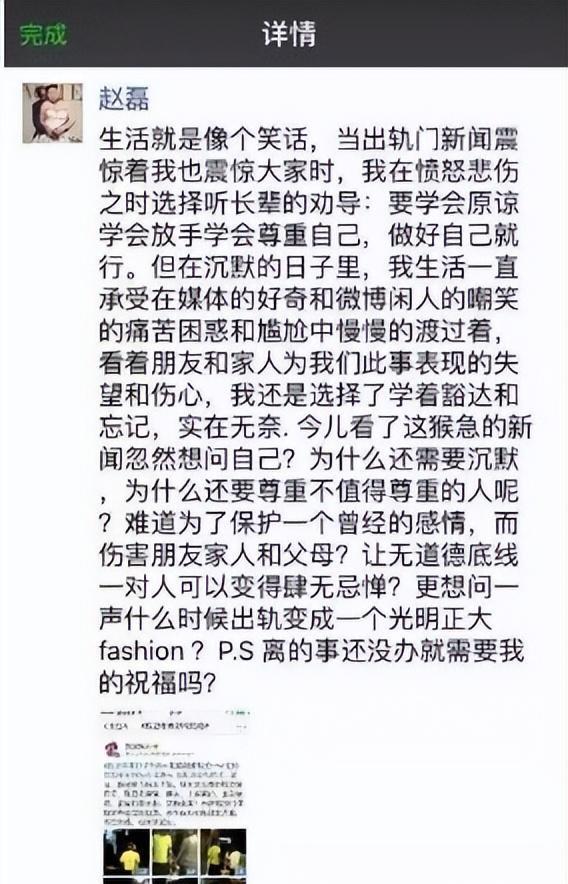 可是秦舒培的反击让赵磊瞬间不敢作声,乖乖离婚。原来在秦舒培的婚外恋曝光之前,赵磊已经出轨在先。