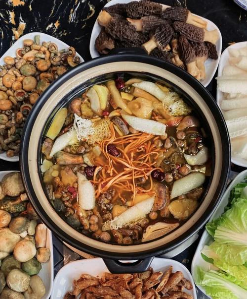 云南的野生菌种类繁多,品质上乘。野生菌火锅选用当地新鲜的野生菌,搭配各种肉类和蔬菜,口感鲜美,营养丰富。在热气腾腾的火锅中,野生菌的鲜香与肉类的醇厚完美融合,让人回味无穷。