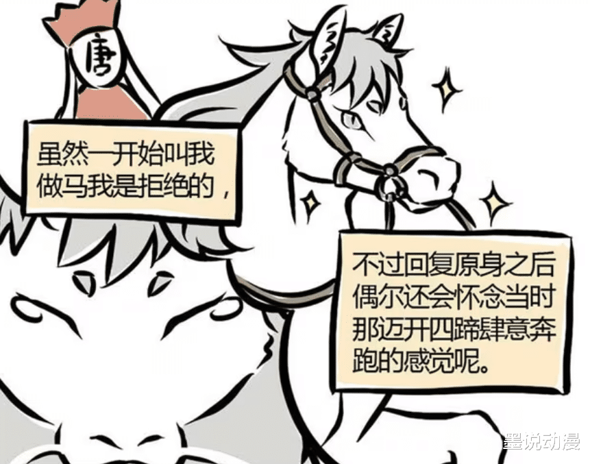 敖烈一开始是拒绝做马的,如果不是他吃掉了唐三藏的白马,也不会有后续的情况。自从认识孙悟空之后,敖烈才知道当马算不错。现在敖烈变回人形态,不过偶尔也会怀念当马的日子。其实现在的敖烈,更喜欢自己变成马,后面的漫画内容中有介绍。