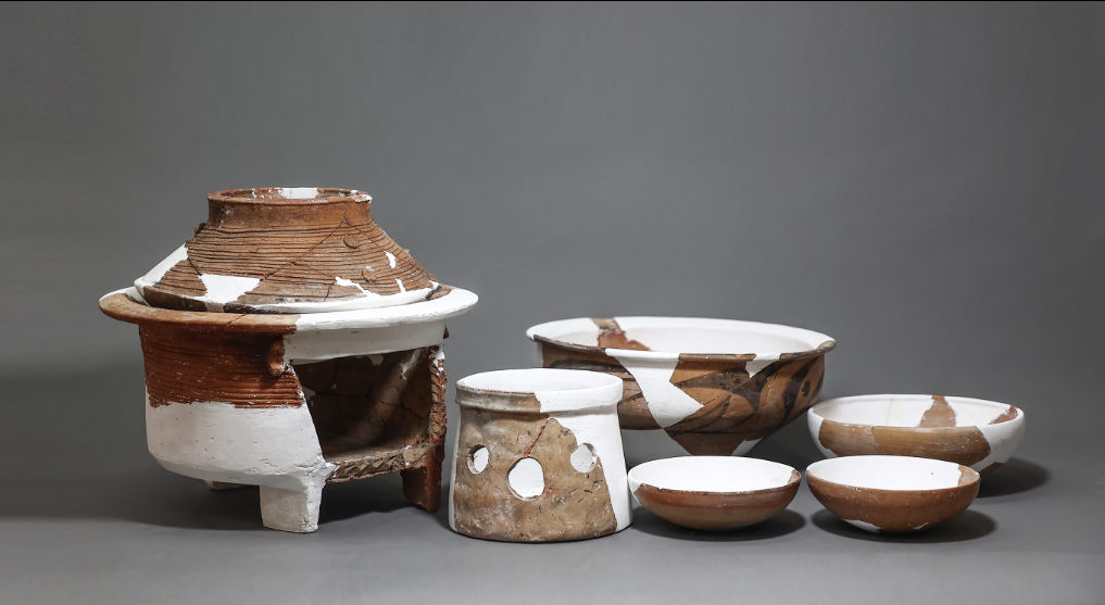 本次发掘中,还出土丰富的圜底钵、简体鱼纹彩陶盆等,是首次在关中东部经大规模发掘的庙底沟文化偏早阶段遗存,为探讨半坡文化与庙底沟文化关系、以及庙底沟文化起源等学术问题提供了丰富的考古材料。出土的1件陶质镂孔浮雕人面像器物,造型十分精美,展现出高超的制作技艺和精湛的艺术表现力,具有重要的学术价值。出土的大型陶鼓,残存高度超过1.1米,规格空前,是史前礼仪制度的实物见证。出土的釜形鼎、宽沿直腹彩陶盆、附杯陶器等一系列器物显示与豫西、晋南、长江中游等地区存在密切的文化交流与互动,展现出文明起源和早期发展过程中的多元交织。