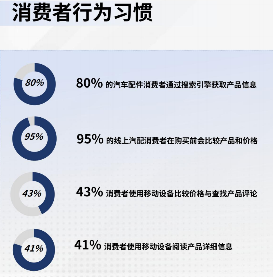 80%的用户会通过搜索引擎了解产品,43%的人会用手机比价、查评论。社交媒体的“种草”效应尤其明显,女性消费者对车饰、安全配件的关注度快速上升。