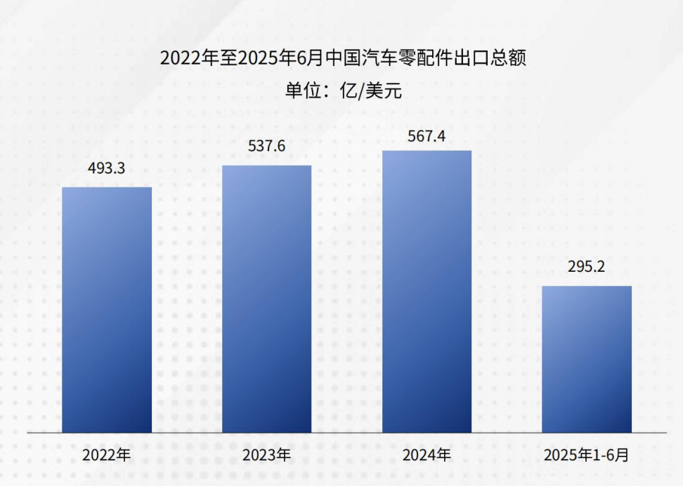 如今,全球汽车保有量已突破16亿辆,平均车龄持续延长,售后市场正成为一片充满潜力的蓝海。中国作为世界最大的汽车零部件生产国,出口额从2022年的493.3亿美元增长至2024年的567.4亿美元,展现出强大的供应链韧性。