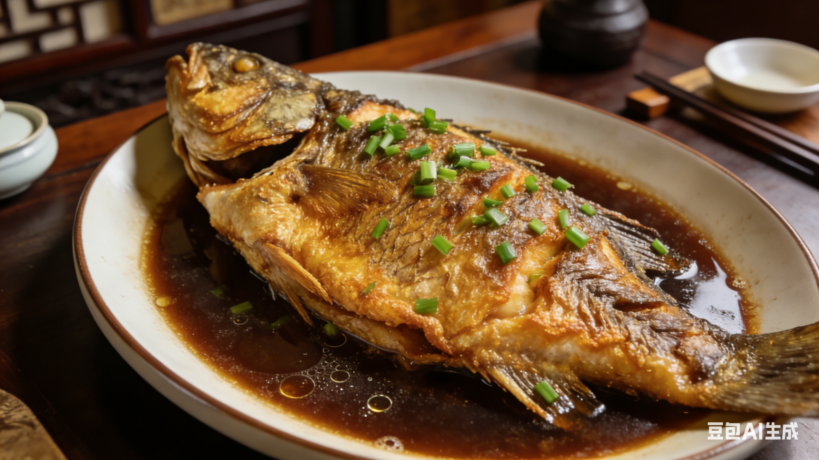 3. 放入臭鳜鱼煎至两面金黄,加料酒、生抽、老抽调味;
