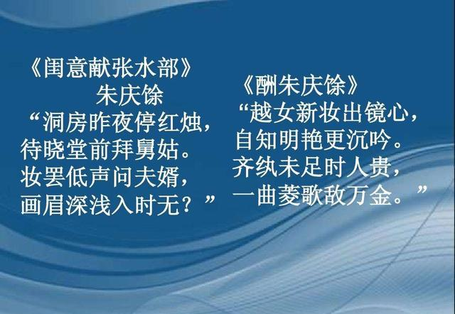 张籍看了这首诗后,就以高超的智商,用同样委婉的手法,写了