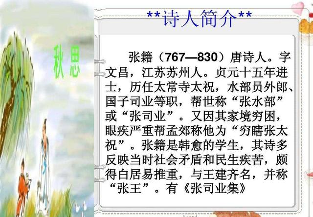 就这样,张籍经过不断地艰苦摸索,终成一代名家。他的诗歌