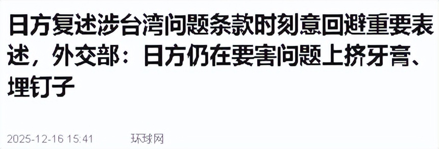 这种做法,本质上就是试图在核心问题上埋雷、在表面上装缓和,日本外务系统甚至试图回避《中日联合声明》的关键条款,翻出早已被否定的旧文件来兜售“台湾地位未定论”,这种小聪明,很快就被中方点破。