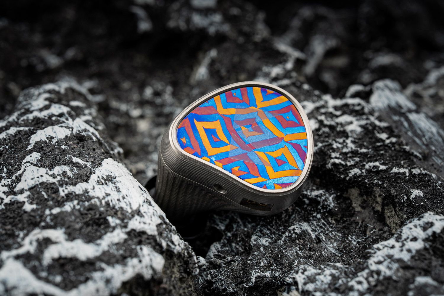 开箱环节我就直接略过了~小编年史作为一款只有公模的型号,Noble给它沿袭了Chronicle编年史上的设计语言,面板纹路的复杂度稍低了一点,但依然保留了极高的辨识度和镭射的皇冠LOGO,会在不同的光线角度下形成不同的观感,而它大部分时候的观感是以蓝、红为主的高饱和色调,与腔体内侧的枪灰色纹路形成了比较大的反差。