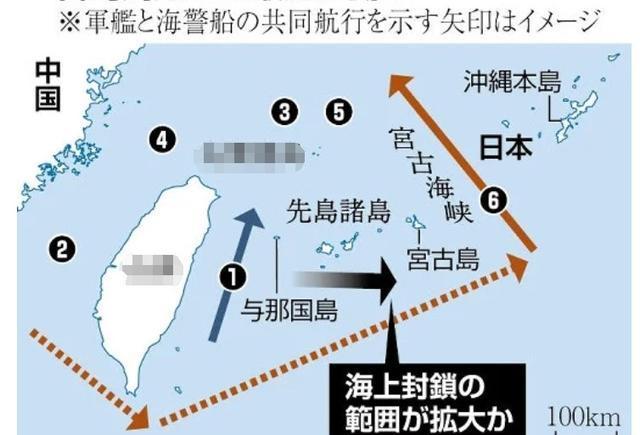 据报道,去年12月22号那天,解放军有3艘护卫舰先是绕着台湾岛和先岛群岛按“逆时针”方向航行,完了之后呢,就和3艘中国海警船碰了头。接着呀,这总共6艘舰艇一块儿从太平洋那边穿过宫古海峡,开到东海里头去了,《读卖新闻》把这事儿说成是“解放军联合中国海警演练海上封锁”呢。